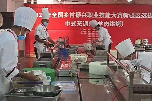 6月23日至24日,2021年全国乡村振兴职业技能大赛新疆区选拔赛,西式面点师、餐厅服务员、中式烹调师的选拔赛分别在欧米奇西餐西点学院和南航明珠国际酒店开赛,此次竞技的参赛选手均为新疆籍农村户口,大赛的举办,是为了推动乡村地区劳动者学习技能、掌握技能,实现以技能促就业,以强能助力振兴乡村为目的。
