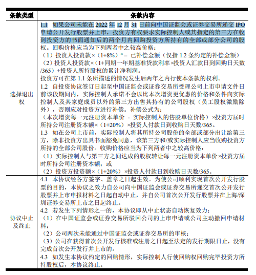 同时,在成功上市之前,投资方对紫燕食品对外融资有着明确规定,增资价格不能更加优惠;若实控人出售股份,则受让方或实控人需要回购投资方的股份等。