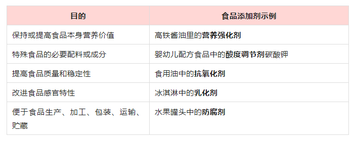 主要作用是改善食品的色、香、味等品质,或抑制微生物等以延长其保质期。一般有以下几种使用目的:
