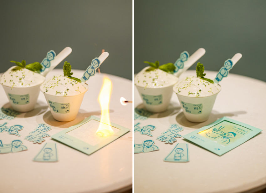 在本次合作中,喜茶还为灵感好友燃少设计了一系列视觉物料及周边,让喜爱他的消费者可以更充分地感受到“燃”的魅力。结合燃少身着主厨制服的形象,以及在厨房经营战中手持搅拌棒死磕莫吉托的经典画面,喜茶以代表性的拙感插画风格进行提炼重现,带来喜拉朵插卡、杯贴,以及贴纸、冰箱贴、燃烧卡等周边。其中,燃烧卡周边呼应燃少的“燃”,在点燃后会呈现他带着喜拉朵自信登场的画面,趣味感十足。