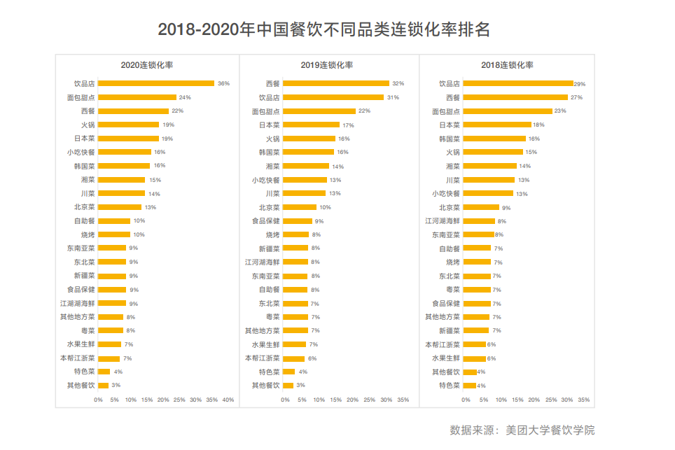 △各品类连锁化率分布(来源:美团大学餐饮学院)