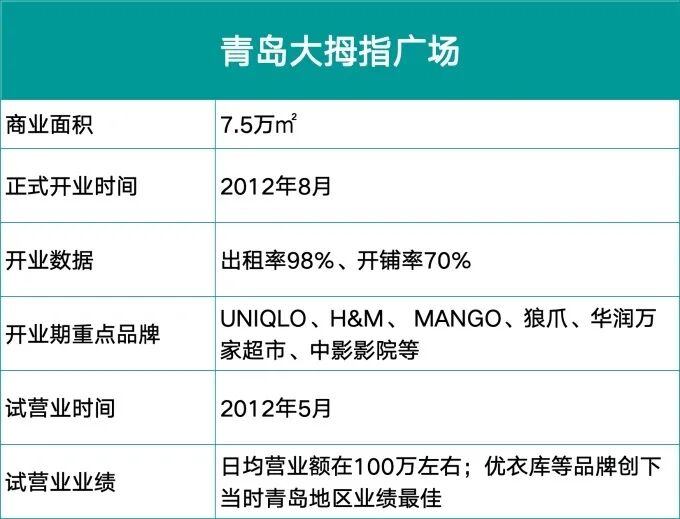 至今犹记大拇指广场试营业首日时的盛况——作为岛城首个大型街区式商业综合体,其不仅集聚了包括优衣库、H&M、无印良品、华润万家等一众热门品牌,且出租率更是高达98%。一跃引领当时尚处起步阶段的崂山商圈,好似拉开了崂山商圈与青岛街区式商业的时代序幕。