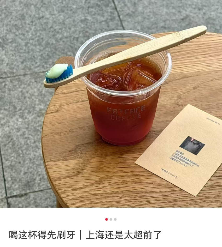 比如今年9月,一款“牙刷咖啡”就凭借新奇的营销玩法悄然走红。据了解,这款创意咖啡定价48元,配置十分特别——奶油被挤在牙刷上充当“牙膏”,咖啡则化身“漱口水”。顾客需先吃掉牙刷上带有薄荷香草味的奶油,再迅速饮下咖啡,让两种口味碰撞出独特的口感体验。据媒体报道,这款吸睛的创意咖啡走红后短短几天内,就被迅速“复制”到沈阳、南通、山东等多个城市的咖啡馆,火爆程度可见一斑。