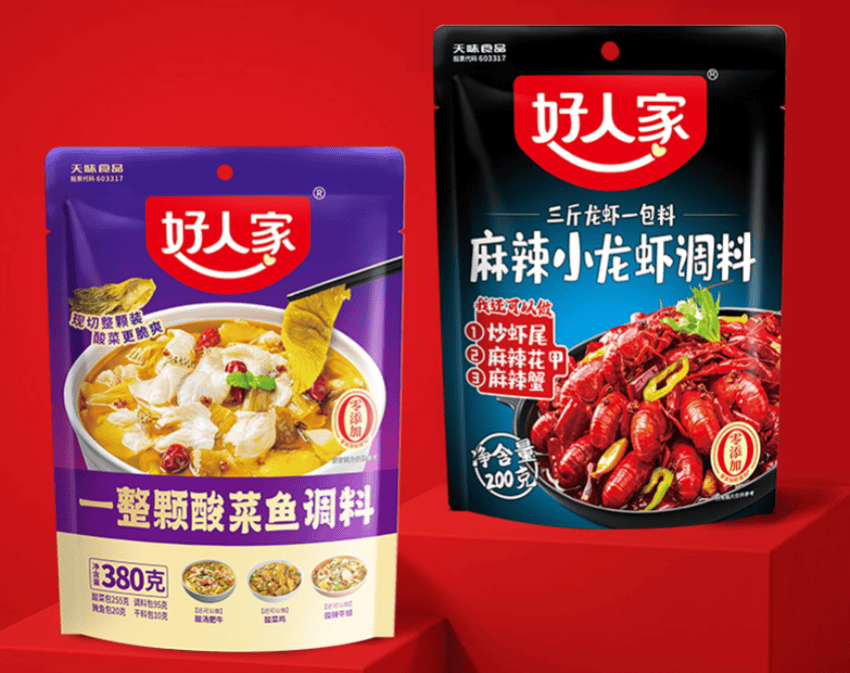 资料显示,天味食品专注于复合调味料的研发、生产、销售,旗下拥有“好人家”、“大红袍”、“天车”、“天味餐调高端定制”、“拾翠坊”五大品牌,产品包括火锅底料、菜谱式调味料、香辣酱、预制菜等100多个品类,主营业务涵盖传统零售、在线零售和餐饮定制三大板块。(天味食品)
